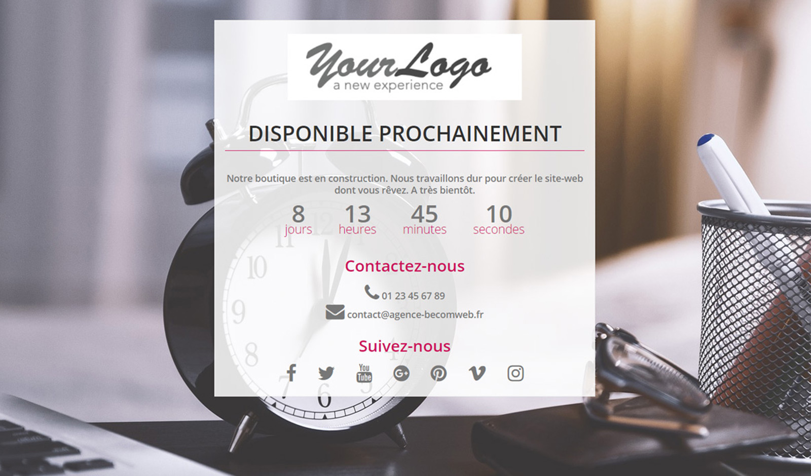 En quelques minutes vous serez en mesure de proposer à vos clients une page de maintenance plus belle et plus complète pour votre boutique Prestashop, comme dans les exemples ci-dessous.