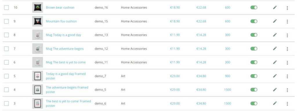 To do this, start by locating the id of the product you want to modify in the list present in the Catalog > Products menu. Pretty simple, it’s the number in the 1st column to the left.