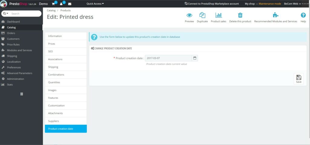 If the operations described above seem complex to you, or if you simply want to simplify your work, you can also use a module to very easily modify the product creation date in Prestashop.