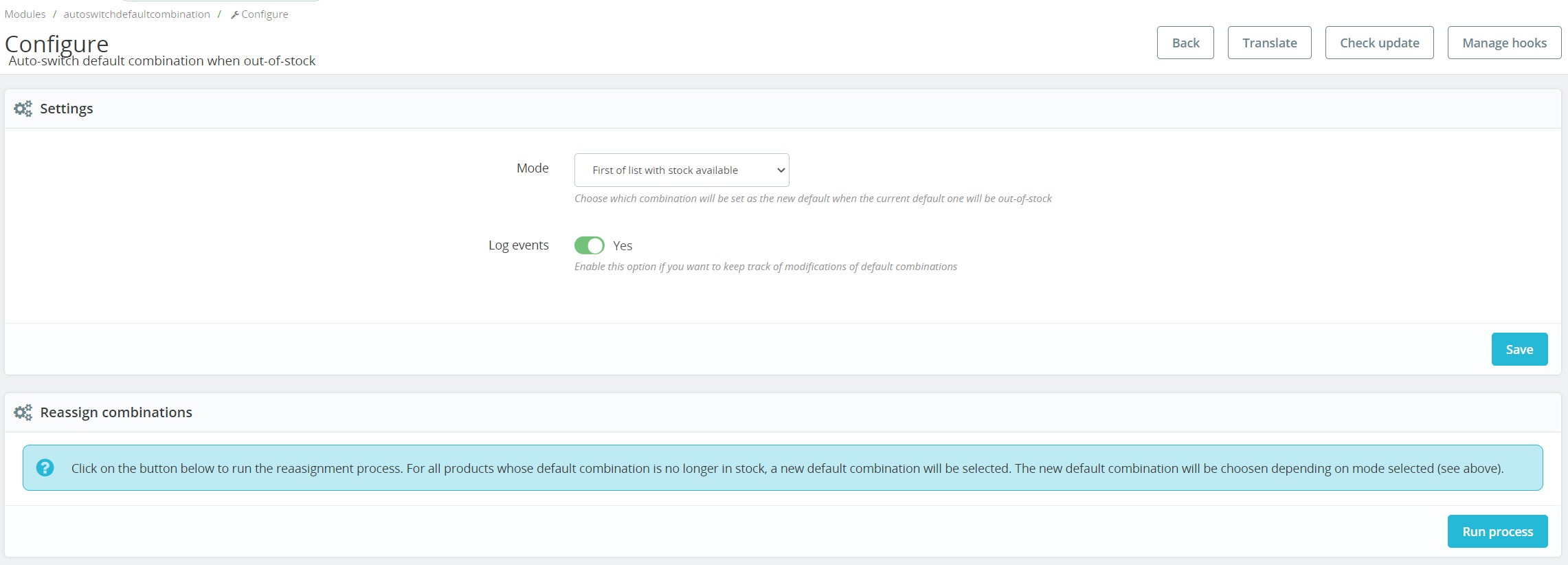 The process is automatic, you do not have to do anything by yourself, the module chooses the new default combination according to the criteria you have chosen: