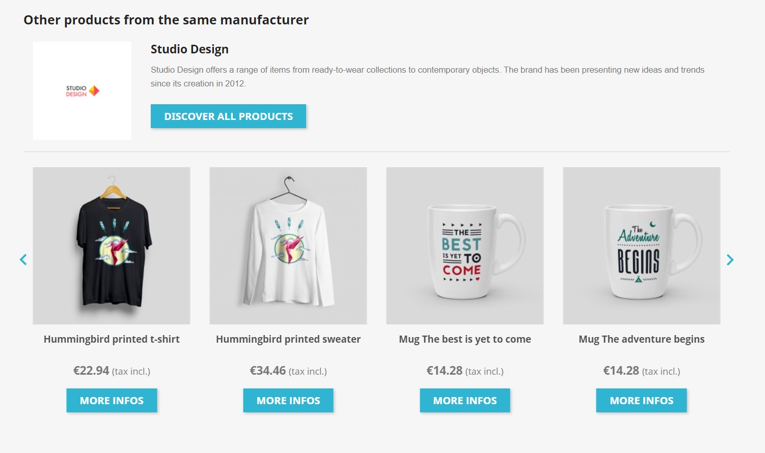 This is why we have designed this module which will allow you to boost your cross-selling by displaying on each product-sheet a list of other products from the same manufacturer / same brand.