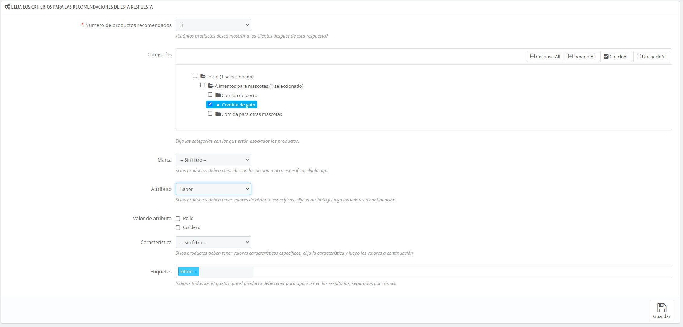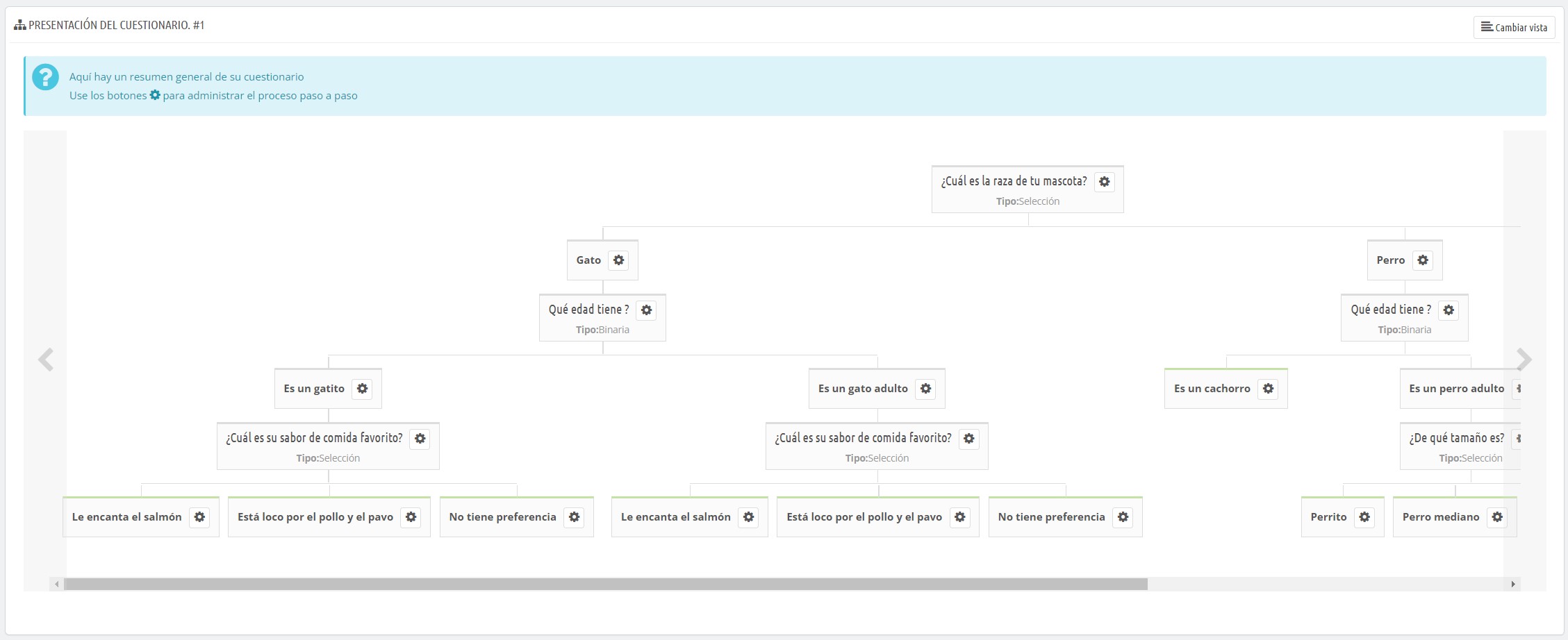 Podrás crear una sucesión de preguntas y respuestas, que permitirán determinar mejor qué productos son los más adecuados a sus hábitos de consumo, sus perfiles o su uso. Así, diseña un «árbol de decisiones» que guiará a sus clientes hacia la elección más adecuada, los artículos que mejor les correspondan.