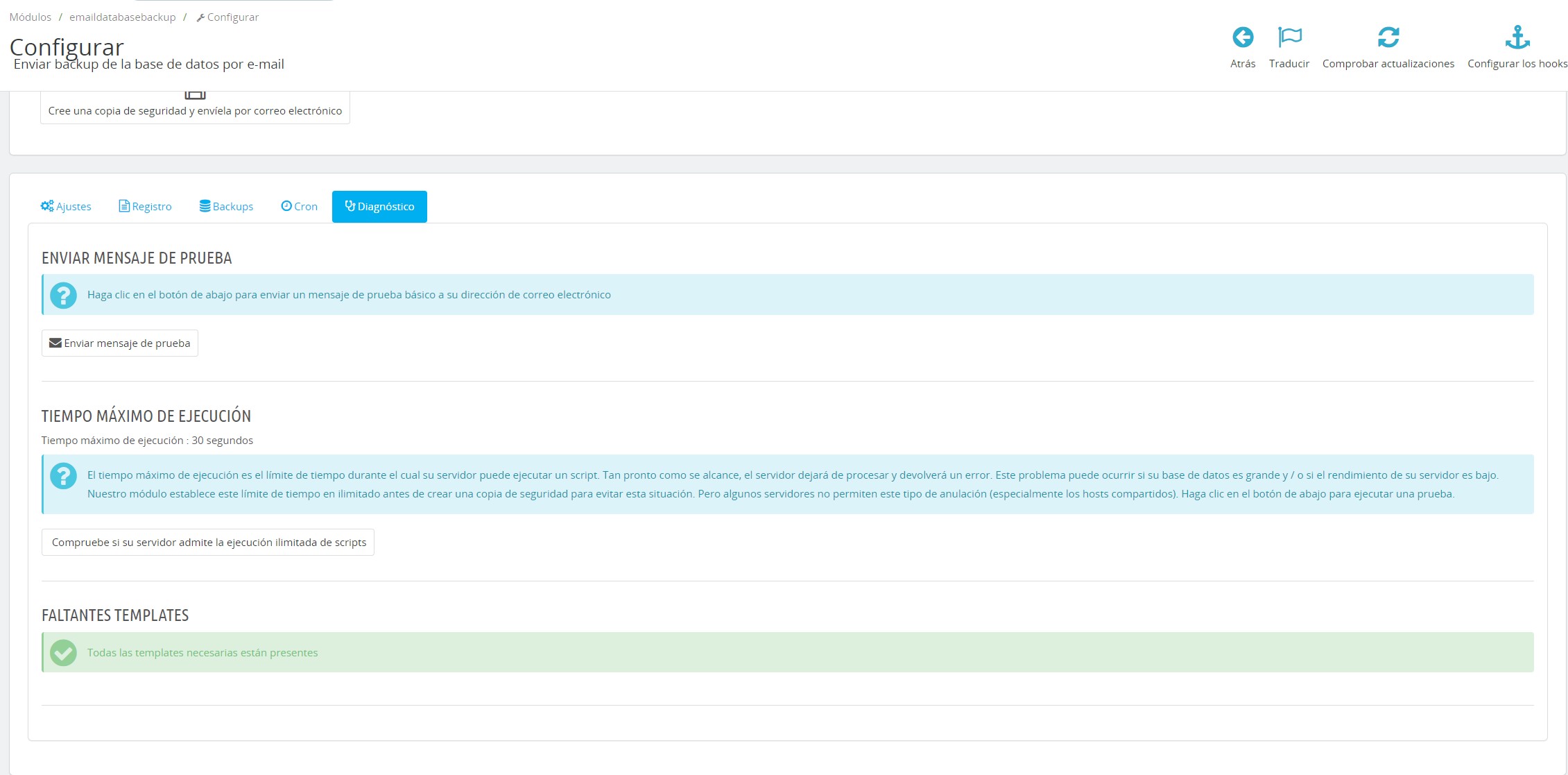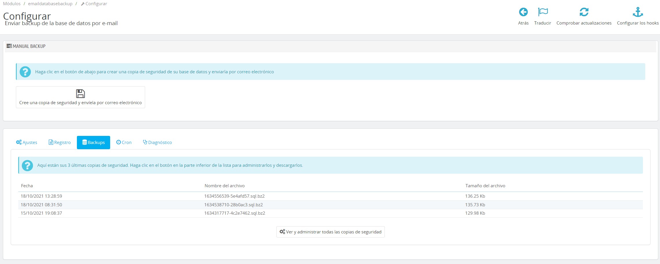 No es necesario acceder al back-office de su sitio para crear una copia de seguridad, el módulo se encarga de ello por usted.