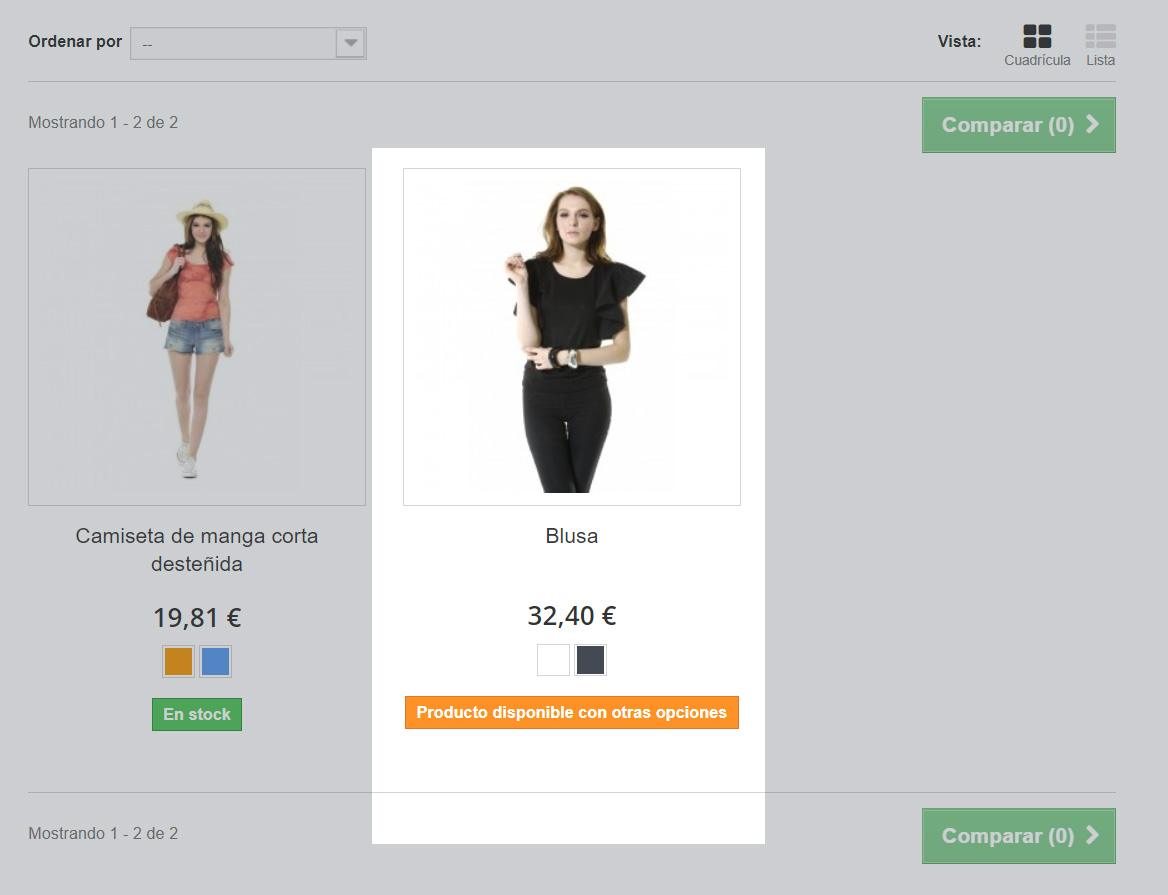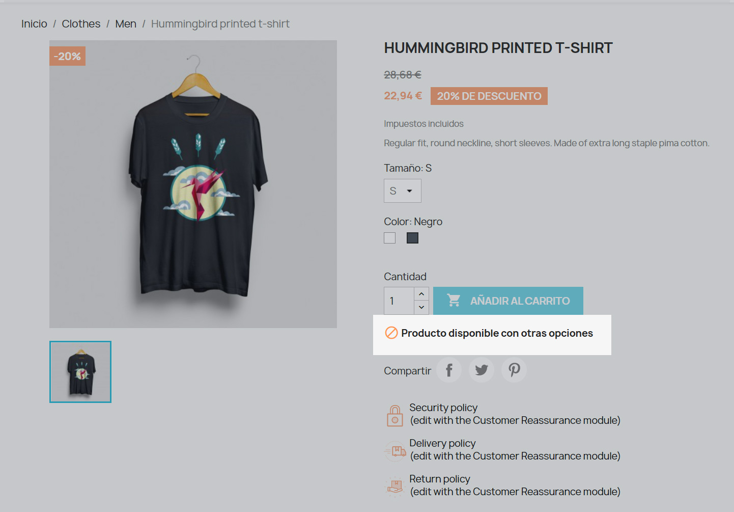 Con Prestashop, cuando la combinación predeterminada de un producto está agotada mientras las otras combinaciones están disponibles, el cliente se encontrará con las siguientes situaciones: