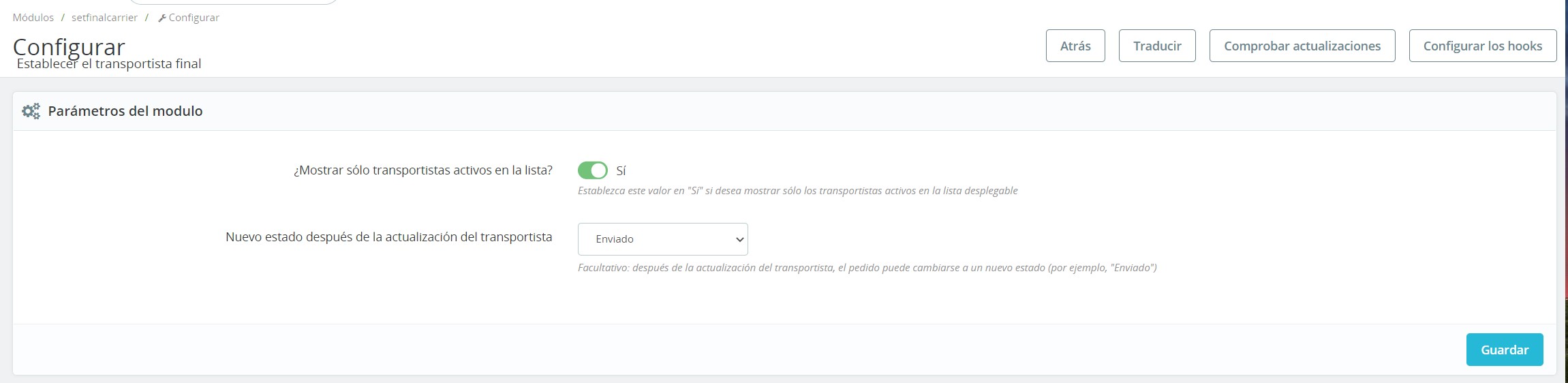 El módulo también ofrece una opción facultativa que le permite caer sobre el pedido en el estado de su elección después de que el módulo haya terminado de cambiar el transportista (como «Enviado»), para ahorrarle tiempo.